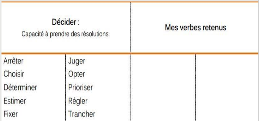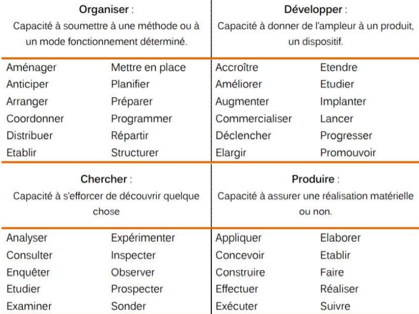 • Utiliser des verbes d'actions qui reflètent vos activités professionnelles